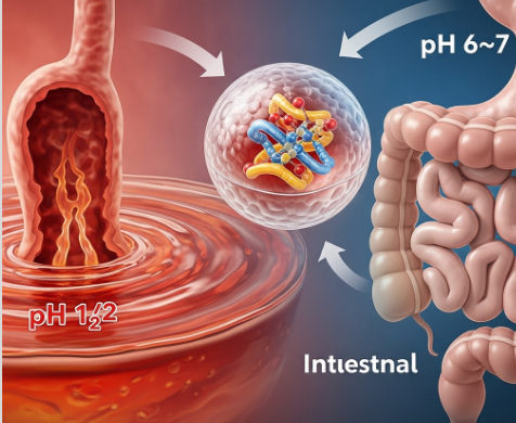 장에서만 효소가 방출되도록 설계된 기능성 제제입니다.
